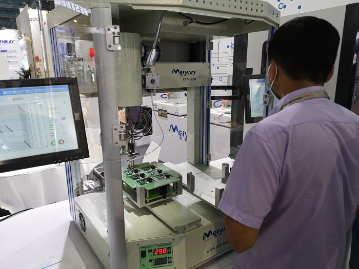 在此次慕尼黑電子展上,DT-461、IL-5000B等邁威最新研發制造的自動焊錫機首次亮相。