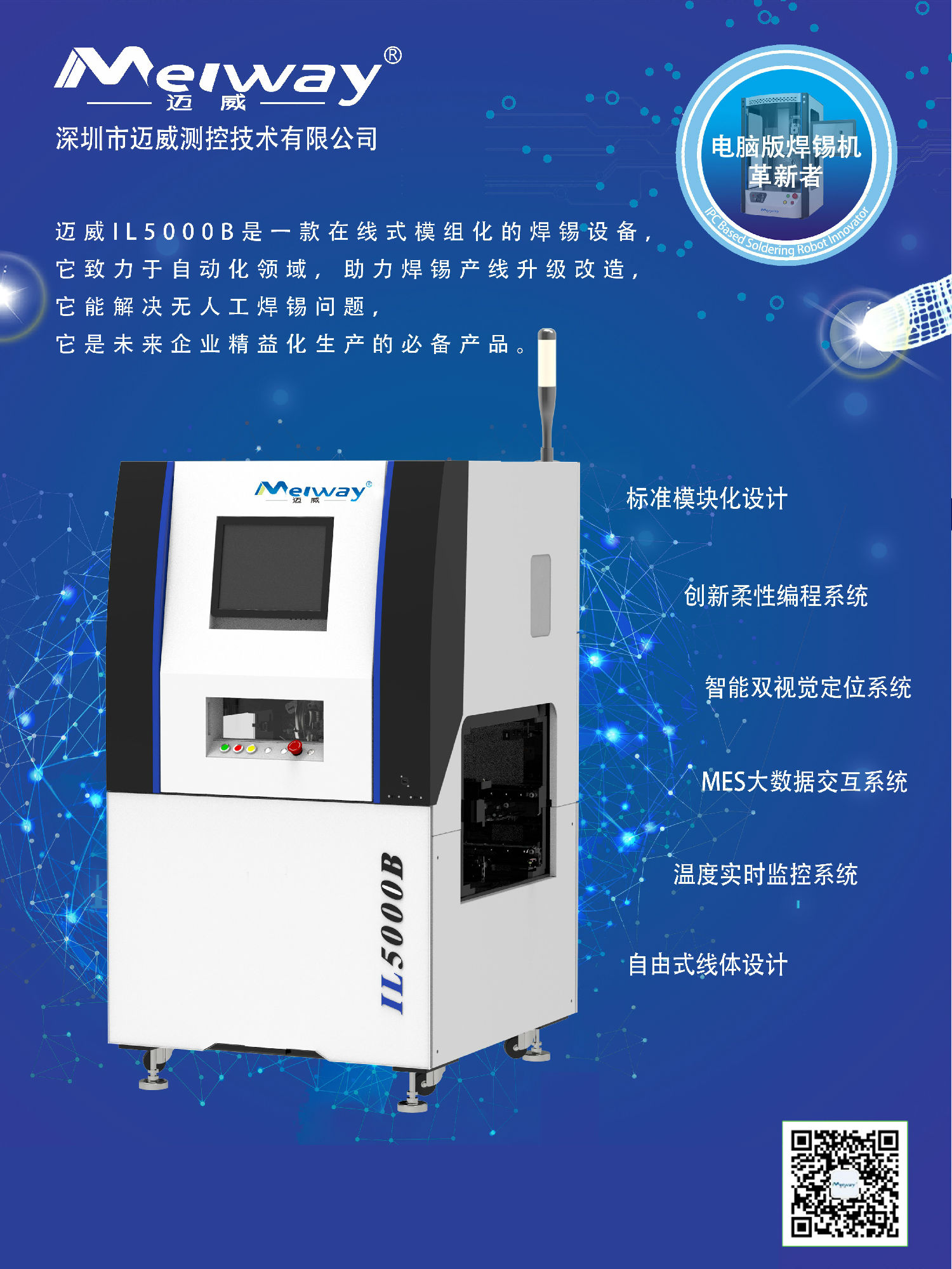 在本次展會(huì)中,邁威將展出IL5000B智能模組式在線焊錫機(jī),它是邁威持續(xù)創(chuàng)新的成果,它將提高廣大電子產(chǎn)品制造商的核心競(jìng)爭(zhēng)力。